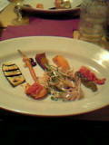 ちなみにこのレストランは、かなり本格派の料理を出すのでよく利用していて、特に前菜とオイルベースのパスタが気に入っています。ヴェネツィア料理なので私にはなじみは無いけれど、カジュアルな雰囲気と美味しいワインもオススメです。本当は、前菜→パスタ二種→お肉料理→デザートと全て写真に収めたかったのですが、目の前のおいしそうな食事とお酒に我を忘れ、楽しい会話に興奮しすぎてすっかり撮るのを忘れてしまいました。よって、まともな写真として残っていたのは結局まだ平常心だった前菜のみでした・・・。おばか