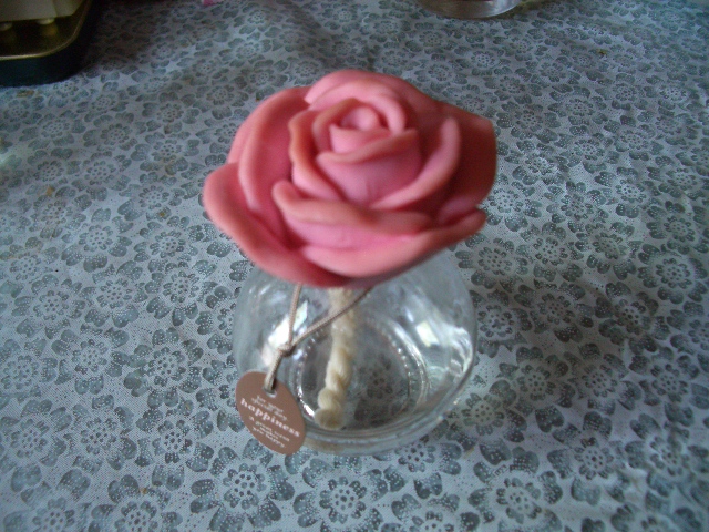 バラの部分が素焼きになっていて、下の香り成分を吸ってバラの香りを放っています。