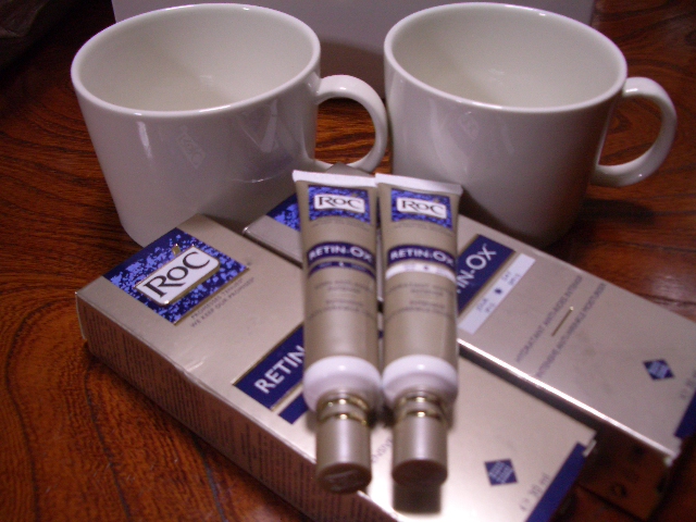 カフェオレがたっぷりはいりそうな、ITTALAのカップとRoCの美容クリーム夜用&昼用!