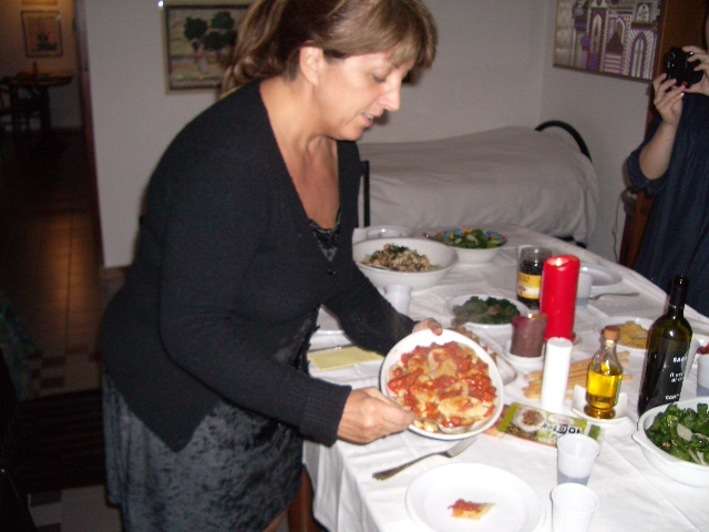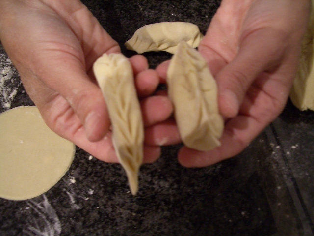 ラビオリ作りは私もお手伝いしました。彼女がするようにうまく作りたいのに、私がするとなぜかギョーザにはや変わり!結局生地を作るのに専念した次第です。(左がAさん作のお見本、右は私が作ったもの)