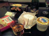 美人で薄化粧の彼女に、メイクを施すことに。ただし、コットンパックの際黙っていることが相当つらかったらしく、ずっとふんふんうなっていました。メイクを終え彼女の目のパッチリ度を上げて大満足。気が付けばおっしゃれ~なおつまみに、ロゼのシャンパンまであいていました。
